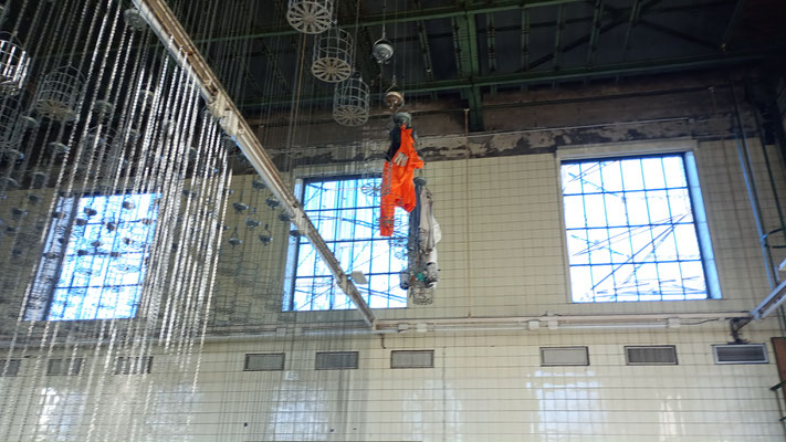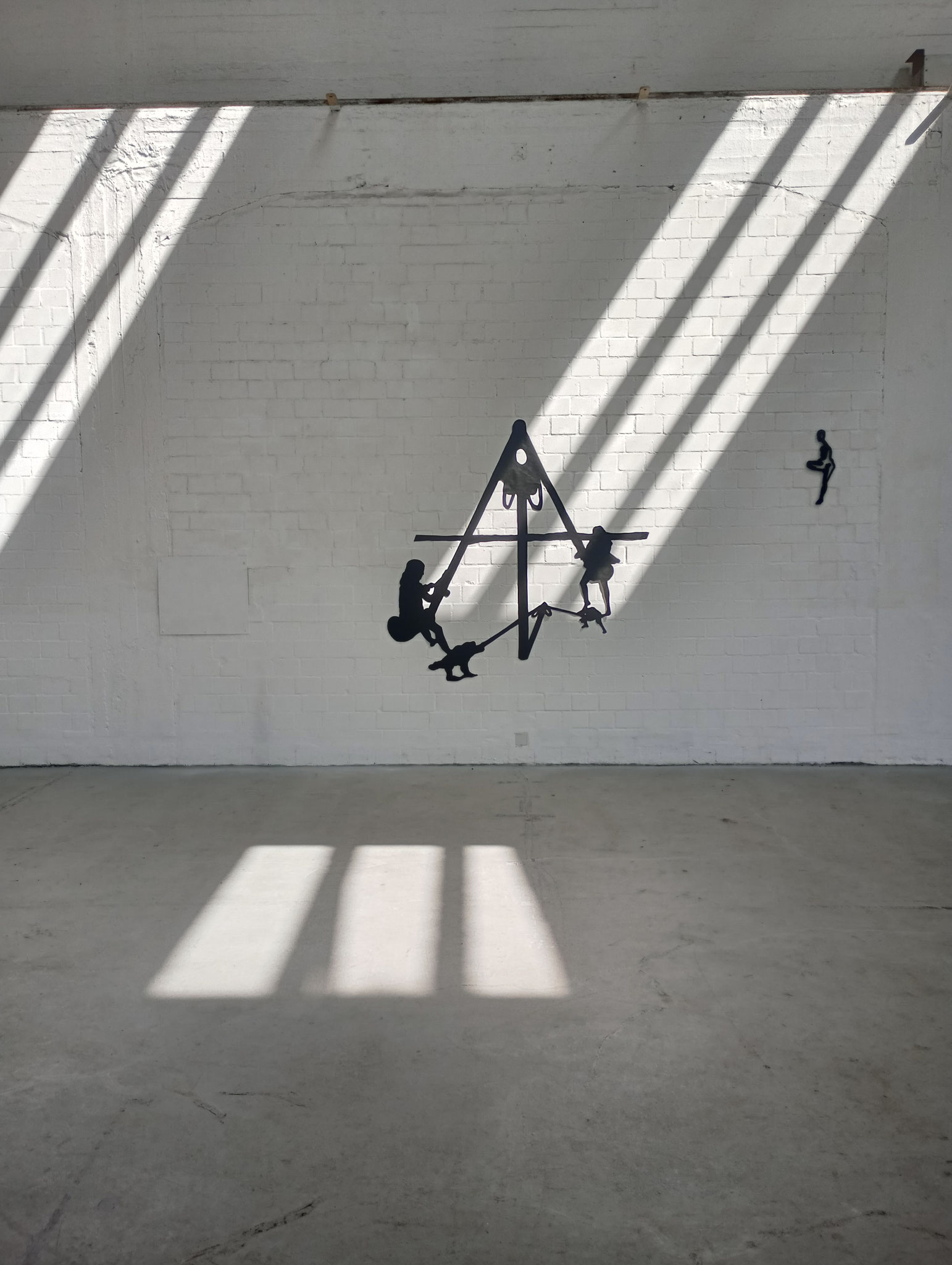 „Über einem von Kriegsnarben gezeichneten Boden, den Kinder nach dem Zweiten Weltkrieg zu ihrem Spielplatz machten, schwebt ein schaukelndes Kind als Symbol dafür, dass der Mensch selbst in Zeiten schwerster Zerstörung und generell immer über Spielraum verfügt, um sich anzupassen, zu verbessern, Freude zu finden und Hoffnung auf eine neue Zukunft zu schöpfen.Die Installation konfrontiert die traumatische Vergangenheit mit der Widerstandsfähigkeit des Lebens und der unbändigen Kraft der menschlichen, insbesondere kindlichen, Imagination, die selbst in widrigsten Umständen kreative Entfaltung ermöglicht.“