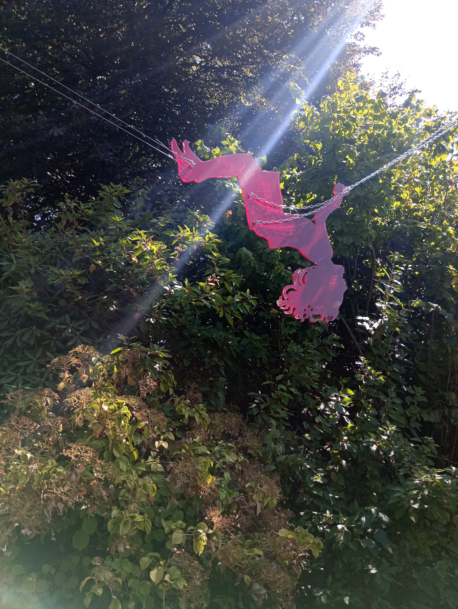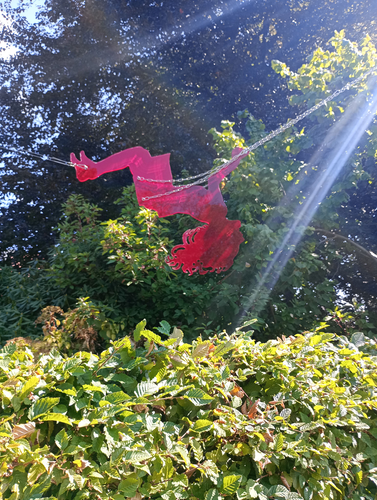 Material: Acryl gelasert, Folie, Edelstahlkette, Stahlseil, Ösen